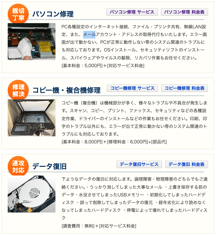 埼玉(さいたま市浦和区)・東京(神田)法人向けパソコン・複合機出張修理、データ復旧・保守